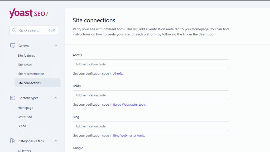 - SEO plugini seadistused, kasutame verifitseerimisekd google serch